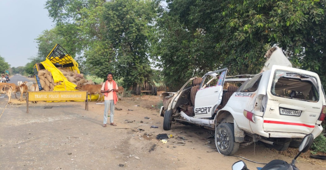 नर्मदापुरम / आय दिन दुर्घटनाएं बढ़ती जा रही जबकि प्रशासन द्वारा दुर्घटना को रोकने के लिए समय-समय पर उचित रोकथाम भी कर रहा हैं। नर्मदापुरम-पिपरिया स्टेट हाईवे पर आंचलखेड़ा और तवा पुल के पास रविवार और सोमवार की दरमियानी रात करीब 1.30 बजे एक भीषण सड़क हादसा हो गया। सोयाबीन से भरी ट्रैक्टर-ट्रॉली और टवेरा वाहन की टक्कर में 5 लोगों की मौत हो गई, जबकि 7 लोग गंभीर रूप से घायल हो गए। हादसा इतना दर्दनाक था की 4 लोगों की मौके पर ही मौत हो गई, जबकि एक घायल ने जिला अस्पताल में दम तोड़ा। मिली