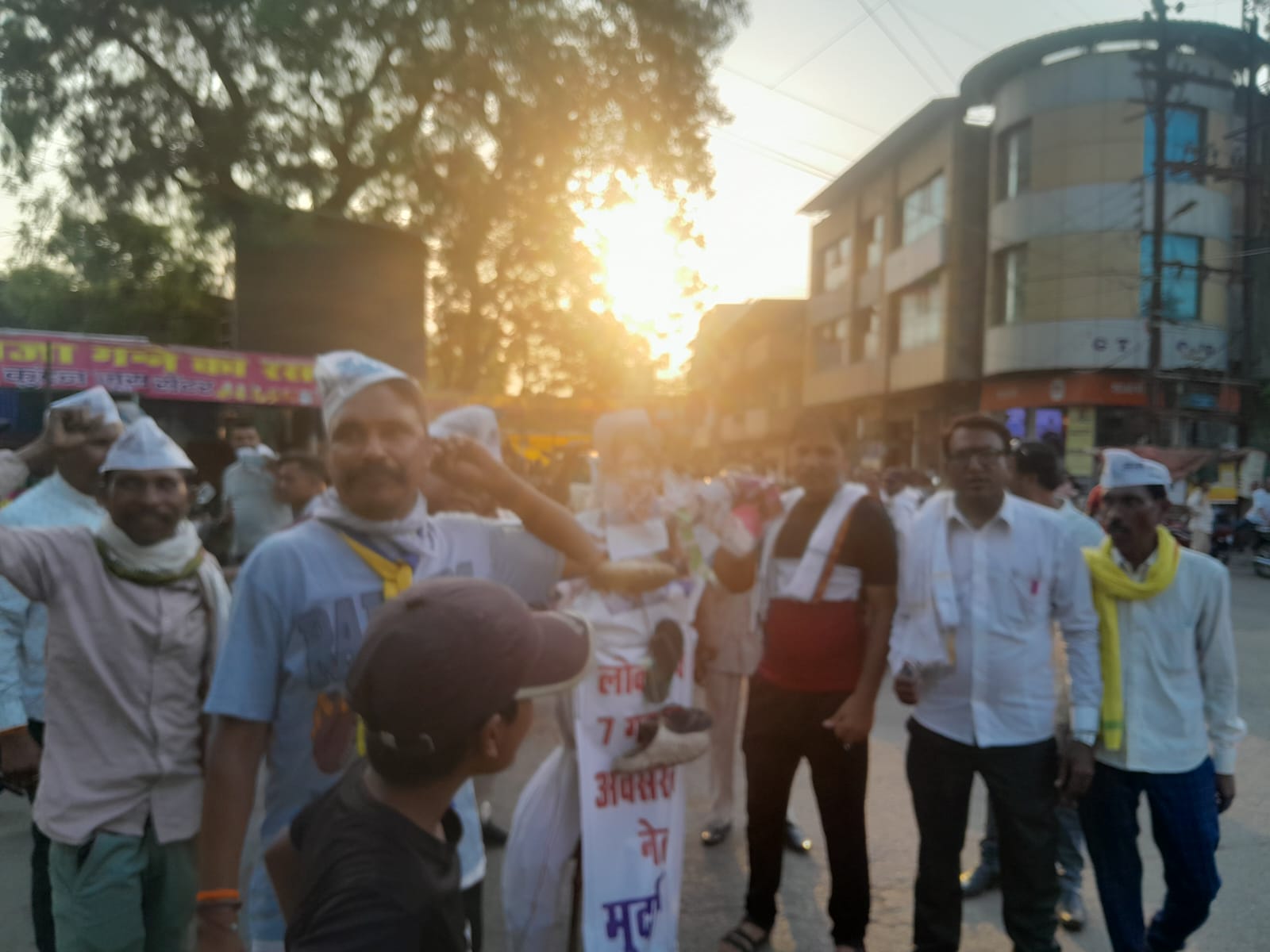 आम आदमी पार्टी के सांसद भाजपा में शामिल हो गए हैं। भाजपा में शामिल होने पर सतरास्ते पर आम आदमी पार्टी के कार्यकर्ताओं ने उनका पुतला दहन किया। भाजपा में विलय करने पर उनका पुतला दहन कर विरोध प्रदर्शन किया। इस दौरान जमकर नारेबाजी की गई। इस कार्यक्रम में जिला अध्यक्ष दीनू यादव जिला सचिव धनीराम गौर, राहुल मीना, मोर सिंह राजपूत ,जिला सचिव, कुलभूषण पाराशर, जिला उपाध्यक्ष समर सिंह प्रजापति, सचिव कासिम अली ,राकेश जरते , लीगल विंग जिला अध्यक्ष परसराम वर्मा, रामकृष्ण मेहरा सचिन ठाकुर , जिला सचिव प्रेम नारायण, सुरेंद्र लुटेरे प्रदेश सहित सचिव विंग प्रदेश सहित सचिव में शर्वस पाठक एवं अन्य को साथी उपस्थित थे।