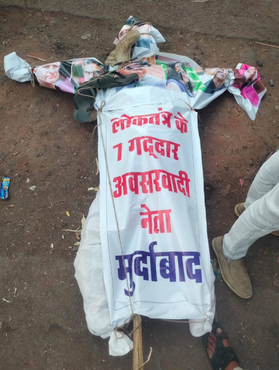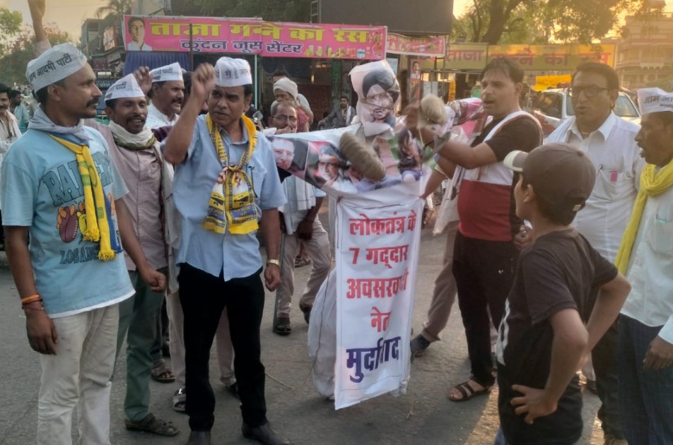 नर्मदापुरम / आम आदमी पार्टी नर्मदापुरम जिला ने सातरस्ता चौराहे पर आम आदमी पार्टी से भाजपा में शामिल हुए 7 राज्यसभा सांसदो का पुतला दहन किया गया। पार्टी में रहकर पार्टी से दगा किया और भाजपा में शामिल हुए। आप नेताओं ने बताया कि ऐसे अवसरवादी नेताओं को ऐसे लोकतंत्र के हत्यारों को नर्मदापुरम के समस्त कार्यकर्ताओं ने पुतला दहन किया। पुतला दहन आम आदमी पार्टी के जिला अध्यक्ष के नेतृत्व में किया गया। पुतला दहन जिला अध्यक्ष दीनू यादव, प्रदेश संयुक्त सचिव शवेश पाठक, प्रदेश संयुक्त सचिव यशवंत मीणा, प्रदेशसंयुक्त सचिव सुरेंद्र लटारे, जिला सचिव कुलभूषण पाराशर, राहुल मीना, लीगल एडवाइसर जिला अध्यक्ष राकेश जराटे, जिला परिषद सचिव कासिम अली, जिला उपाध्यक्ष समर सिंह प्रजापति, जिला सहित सचिव धनीराम गौर, सचिन ठाकुर, जिला कार्यालय प्रभारी मोहर सिंह राजपूत, जिला और सचित्र महिला विंग नीतू यादव, प्रदेश सचिव अजय मालवीय एवं अन्य साथी उपस्थित थे।