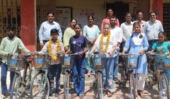 नर्मदापुरम / शासकीय माखनलाल चतुर्वेदी उच्चतर माध्यमिक विद्यालय हिरनखेड़ा में नवीन सत्र 2026-27 के विद्यार्थियों को शासन की योजनांतर्गत साइकिल वितरण कार्यक्रम आयोजित किया गया। इस अवसर पर मुख्य अतिथि के रूप में उपस्थित सरपंच सुश्री अमृता लिटोरिया ने शाला के 04 बालक और 08 बालिका, कुल-12 विद्यार्थियों को साइकिल वितरण की गई। साइकिल वितरण कार्यक्रम को संबोधित करते हुए सरपंच अमृता लिटोरिया ने कहा कि यह साइकिल स्कूल और विद्यार्थियों के बीच सेतु का काम करेगी। विद्यार्थियों के हितों को ध्यान में रखते हुए शासन द्वारा उनके आवागमन की कठिनाईयों को दूर करते हुए यह साइकिल प्रदाय की जा रही है। सभी विद्यार्थी नियमित रूप से स्कूल आकर अपना उज्जवल भविष्य बनावें। साइकिल वितरण कार्यक्रम में संकुल प्राचार्य राकेश साहू, लखन लाल सुलेखिया, साधना रघुवंशी, अखिलेश यादव, विकास दीक्षित, राजकुमार यादव, सोनाली लछोरिया आदि वरिष्ठ शिक्षकगण भी प्रमुख रूप से उपस्थित रहें।