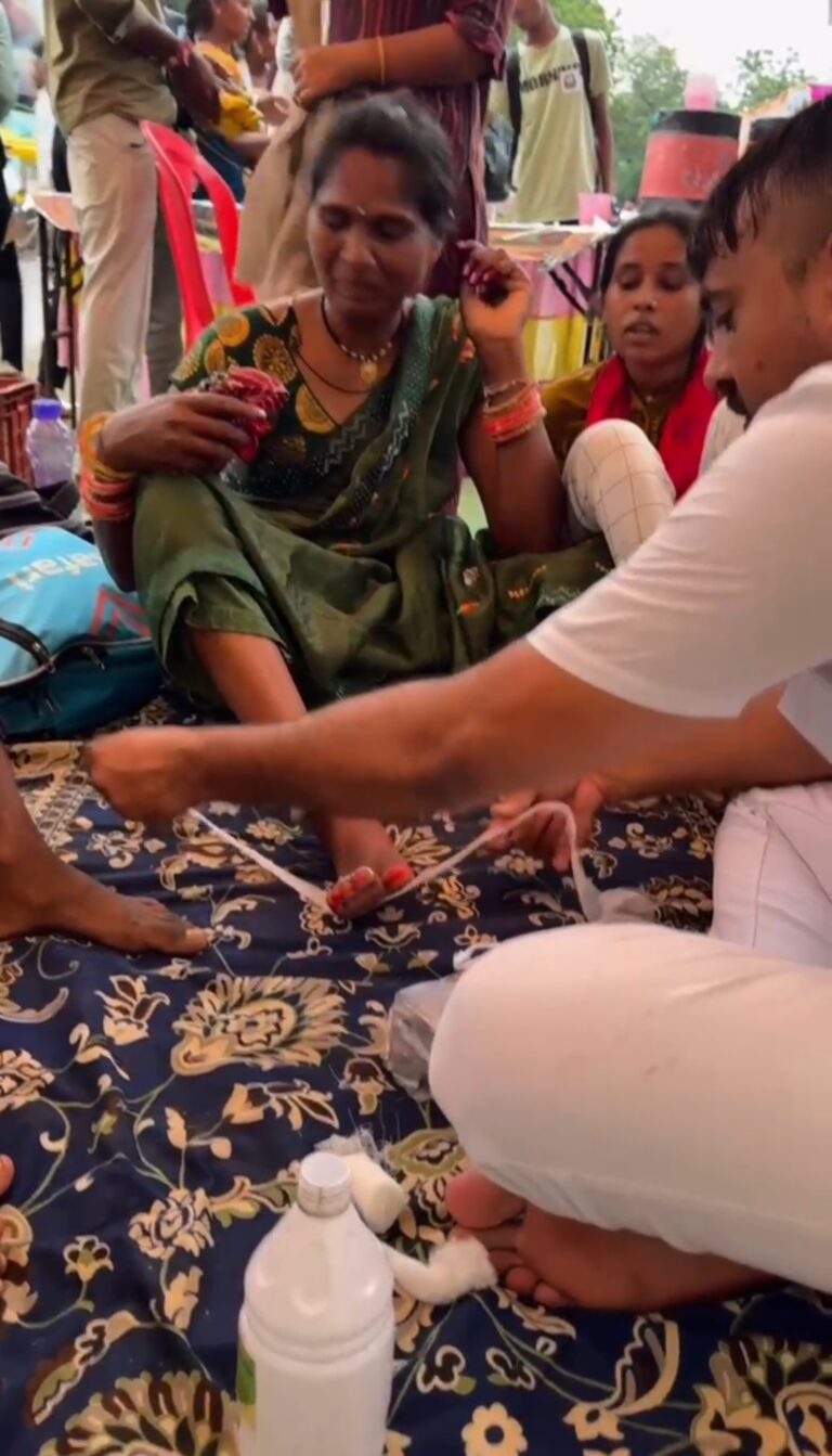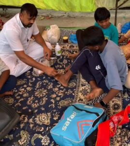 नर्मदापुरम / शारदीय नवरात्र प्रारंभ है और सुप्रसिद्ध देवी धाम सलकनपुर जाने वाले श्रद्धालु जो पैदल चलकर सलकनपुर धाम जा रहे हैं, उनके पैर में पैदल चलने से छाले पड़ रहे हैं। जिनका उपचार नर्मदा महाविद्यालय के सामने फलहार वितरण रोहित पवार एवं मित्र मंडली द्वारा किया जा रहा है एवं पंडाल में श्रद्धालु विश्राम भी करने बैठ रहे हैं और जो पैदल यात्री जिनके पैदल चलने में पैर घायल हो रहे हैं उनमें अपने हाथों से दवाई लगा रहे हैं रोहित पवार उर्फ़ लकी पवार। वह कहते है कि उनके द्वारा देवी भक्तों की यह सेवा करना मेरा सौभाग्य है।