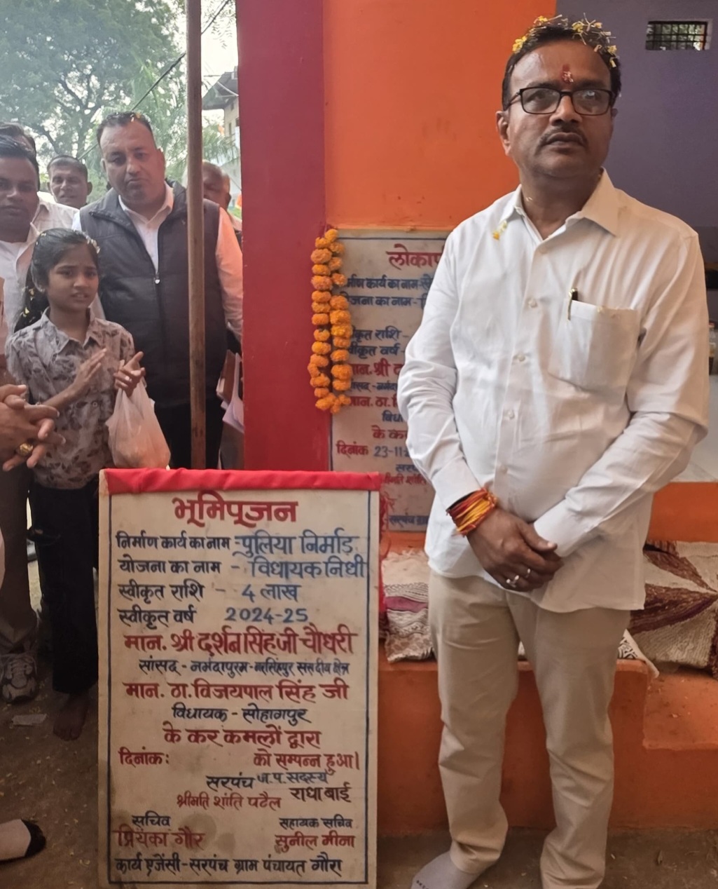 नर्मदापुरम / रविवार को सोहागपुर विधायक विजयपाल सिंह ने ग्राम सकतपुर, ग्राम पंचायत गोरा में विकास के नए आयाम विधायक निधि से स्वीकृत विभिन्न निर्माण कार्यों ₹3 लाख से खेड़ापति परिसर (पुराना गोरा पेपर ब्लॉक), ₹2 लाख से खेड़ापति कक्ष निर्माण, ₹4 लाख की लागत से पुलिया निर्माण एवं ₹1 लाख के लोकार्पण व भूमिपूजन