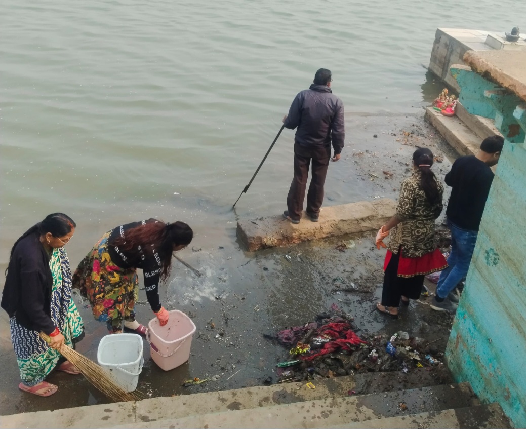 नर्मदापुरम / शहर के चित्रगुप्त घाट पर रविवार को अखिल भारतीय कायस्थ समाज मातृशक्ति द्वारा घाट के किनारे और फर्श पर साफ सफाई की गई । नर्मदा नदी के किनारे से कचरा कूड़ा निकाला गया और कचरे को डस्टबिन में डाला गया । इस अवसर पर अखिल भारतीय कायस्थ समाज मातृशक्ति एवं प्रखर समाजसेवी सुमन वर्मा ने कहा कि नर्मदा हम सब की जीवनदायनी है । हम सब का कर्तव्य है मां को सुंदर और स्वच्छ बनाएं और इस स्वच्छता के अभियान में हर समाज के व्यक्ति को आना चाहिए जिससे हम नर्मदा को स्वच्छ और सुंदर बना सके और हम नर्मदापुरम को नंबर वन बना सकें । मंजू श्रीवास्तव, प्रीति खरे,सुमन वर्मा, ज्योति वर्मा, जानकी, अदिति वर्मा, अनीता वर्मा, सी बी खरे, मनोज वर्मा, अभय वर्मा, केशव देव वर्मा, विजय वर्मा, लालता प्रसाद, आदित्य आदि मौजूद थे। इस मौके पर सुमन वर्मा ने कहा कि नर्मदा में गंदगी नहीं डालें। नर्मदा में मछली वह अन्य जीव इसका सेवन करें उसे खाएं इसलिए आटे की लोई डालें। जिससे नर्मदा में जो मछलियां है उन्हें अच्छा भोजन मिल सके । इस मौके पर मनोज वर्मा ने कहा कि मां नर्मदा हमारे जीवन दायिनी है। घाटों को स्वच्छ रखना हमारा कर्तव्य है यह हमारे शहर की पहचान है। सभी संगठनों को आगे आना चाहिए और साफ सफाई करना चाहिए। नर्मदा एक पवित्र नदी है दर्शन मात्र से ही लोगों को पुण्य मिलता है। यह कल कल बहती रहे ऐसा प्रयास हमें करना चाहिए। नर्मदा के किनारे से बड़े कचरे को डस्टबिन में डाला गया। मनोज वर्मा ने कहा कि स्वच्छता अभियान का यह कार्य पुनीत कार्य अखिल भारतीय कायस्थ समाज मातृ शक्ति द्वारा निरंतर विकास दो वर्षों से यह कार्य किया जा रहा है । इसके लिए सभी सामाजिक मातृशक्ति और इस पुण्य कर में उपस्थित होने वाले सभी स्थानीय नागरिक को मैं बहुत-बहुत बधाई देता हूं। उन्होंने कहा कि मुझे भी आज स्वच्छता अभियान में सफाई करने मां नर्मदा के मौका मिला में अपने आप को बहुत सौभाग्यशाली समझता हूं।