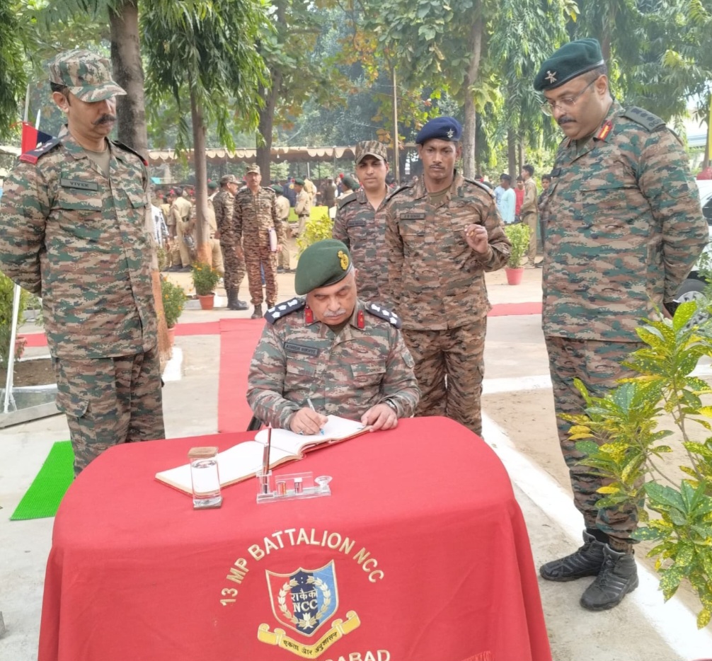 नर्मदापुरम / 13 एमपी बटालियन एनसीसी नर्मदापुरम द्वारा दिनांक 19 नवंबर से 28 नवंबर 2025 तक संचालित वार्षिक प्रशिक्षण शिविर का निरीक्षण आज भोपाल ग्रुप कमांडर ब्रिगेडियर आशीष रिखे ने किया, सर्वप्रथम ब्रिगेडियर आशीष रिखे की अगवानी 13 एमपी बटालियन के कमान अधिकारी कर्नल एस पी सिंह, एडम ऑफिसर लेफ्टिनेंट कर्नल विवेक कुमार, सूबेदार मेजर जी बी सिंह के द्वारा की गई, तत्पश्चात एनसीसी कैडेट के द्वारा भोपाल ग्रुप कमांडर ब्रिगेडियर आशीष रिखे को गार्ड ऑफ ऑनर दिया गया इसके उपरांत ब्रिगेडियर आशीष रिखे के द्वारा बटालियन के सहयोगी एनसीसी अधिकारियों एवं कर्मचारियों से परिचय प्राप्त किया। तत्पश्चात कमान अधिकारी 13 एमपी बटालियन एनसीसी कर्नल एस. पी सिंह ने बटालियन की वार्षिक गतिविधियों के साथ साथ संचालित कैंप एवं ट्रेनिंग के संबंध में विस्तृत जानकारी ने उन्हें दी, ब्रिगेडियर आशीष रिखे ने आशा व्यक्त की 13 एम पी बटालियन एन सी सी नर्मदापुरम के द्वारा संचालित कैंप में सम्मिलित कैडेट्स उत्कृष्ट प्रशिक्षण प्राप्त कर बटालियन के आदर्शो को आगे बढ़ाएंगे। निरीक्षण के दौरान यूनिट की कार्यप्रणाली एवं सहयोगी एन सी सी अधिकारियों की भूमिका की सराहना की अपने निरीक्षण के दौरान ब्रिगेडियर आशीष रिखे ने कैंप में संचालित विभिन्न गतिविधियों एवं विभिन्न ट्रेनिंग एरिया, कैडेट्स डायनिंग एरिया एवं कूक हाउस, फायरिंग रेंज, का भी निरीक्षण किया इस दौरान “एक भारत श्रेष्ठ भारत” थीम पर आधारित फ्लैग एरिया का भी ब्रिगेडियर के द्वारा निरीक्षण किया गया, जहां उन्हें कैडेट के द्वारा उन्हें ब्रीफिंग की गई। से इस दौरान कैडेट से चर्चा करते हुए ब्रिगेडियर आशीष रिखे ने चर्चा करते हुए कैडेट्स को लगन से प्रशिक्षण प्राप्त कर स्वयं को सैन्य सेवाओं के लिए खुद को योग्य एवं प्रोफेशनल बनाने का आह्वान किया। इस दौरान थर्ड ऑफिसर शेख कमर की रैंक सेरिमनी भी की गई। निरीक्षण के दौरान फर्स्ट ऑफिसर जयकुमार वर्मा सेकंड ऑफिसर संतोष रघुवंशी, सेकंड ऑफिसर विजय प्रकाश श्रीवास्तव, थर्ड ऑफिसर महेश यादव, थर्ड ऑफिसर देव कुमार, थर्ड ऑफिसर सत्यनारायण कुशवाह, सूबेदार राजवीर सिंह सूबेदार, राकेश सिंह एवं बी एच एम पूरन मिश्रा उपस्थित रहे।