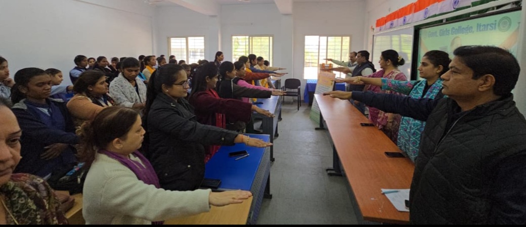 इटारसी / शासकीय कन्या महाविद्यालय में 76वें संविधान दिवस पर संगोष्ठी का आयोजन किया गया। कार्यक्रम का शुभारंभ भीमरावजी अंबेडकर की प्रतिमा पर माल्यार्पण कर किया गया। कार्यक्रम में वक्ताओं ने भारतीय संविधान की प्रस्तावना, निर्माण, स्रोत, मौलिक अधिकार एवं कर्तव्य, स्वतंत्र न्यायपालिका, सरकार का गठन राज्य के नीति निर्देशक तत्व, संविधान का लोकतंत्र में महत्व आदि विषयों पर विचार व्यक्त किये।कार्यक्रम में प्राचार्य डॉ. आर. एस. मेहरा ने कहा कि भारतीय संविधान को राष्ट्रीय आंदोलन के दौरान जागृत राजनीतिक चेतना का परिणाम माना जाता है। भारतीय संविधान आजादी के 78 वर्षों के पश्चात भी एक जीवंत दस्तावेज की तरह अपना अस्तित्व बनाए हुए हैं। यह देश व समाज की बदलती आवश्यकताओं को पूरा करने के लिए समय के साथ विकसित और बदलता रहता है। आइ.क्यू.ए.सी. प्रभारी डॉ. हरप्रीत रंधावा ने कहा कि डॉ. अंबेडकर ने कहा था कि “संविधान केवल एक कानूनी दस्तावेज नहीं है यह एक मार्गदर्शक है जो समाज को दिशा देता है.”। डॉ. संजय आर्य ने कहा कि हम सभी को संविधान का ज्ञान होना चाहिए ताकि हम अपने अधिकारों एवं कर्तव्यों से परिचित हो सके। अंत में सभी छात्राओं को प्राचार्य द्वारा संविधान की प्रस्तावना की शपथ दिलवाई गई। इस अवसर पर सभी प्राध्यापकगण तथा छात्राएं उपस्थिति थी।