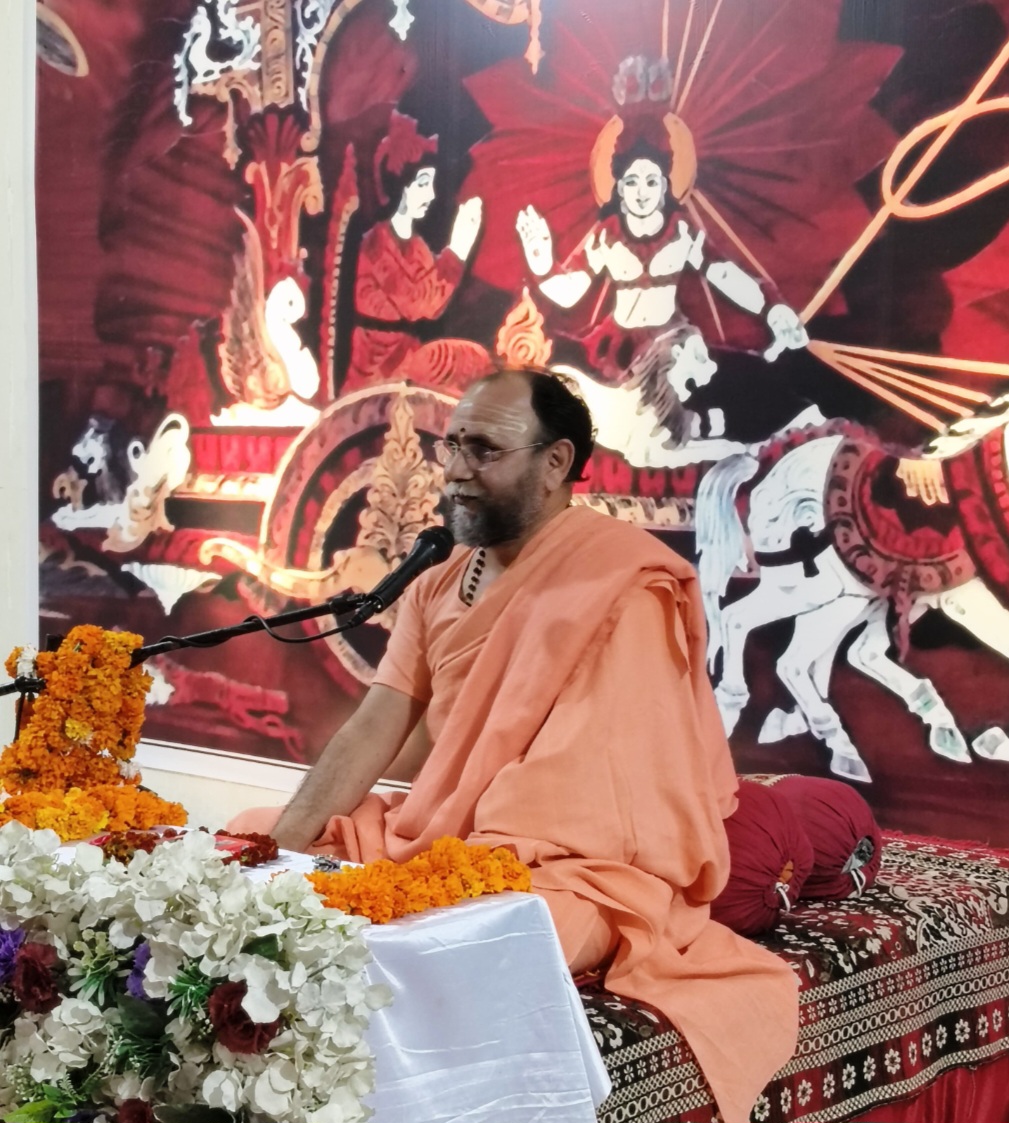 नर्मदापुरम / श्री गीता जयंती महोत्सव समिति के तत्वाधान में आयोजित गीता जयंती के त्रिदिवसीय ज्ञान सत्र में श्रीमद्भगवद्गीता पर प्रवचन हेतु ऋषिकेश से पधारे स्वामी ध्रुव चैतन्य सरस्वती परमाध्यक्ष, सुबोधानंद फाउंडेशन ने व्यास गादी से अपने उध्बोधन में कहा कि आज मोक्षदा एकादशी गीता जयंती के दिवस ही भगवान श्री कृष्ण ने अपने श्रीमुख से कुरुक्षेत्र में अर्जुन को गीता का उपदेश दिया था। गीताजी धर्मशास्त्र के स्थान पर आध्यात्म शास्त्र है। धर्मशास्त्र विधि निषेध पर बल देता है, जबकि आध्यात्म शास्त्र व्यक्ति को शिक्षित करता है। अर्जुन कर्तव्य के संबंध में अनिर्णय की स्थिति में पहुंचने पर शिक्षा की जिज्ञासा करते हैं, गीता की समाप्ति पर भगवान कहते हैं, अर्जुन मैं तुम्हें सब कुछ बता दिया है अब तुम निर्णय करो कि तुम्हें क्या करना है। अर्थात भगवान हमें विवेकी बना देना चाहते हैं। यही सनातन धर्म है इसी के कुछ पहलुओं पर हमें चिंतन करना है। अर्जुन के सारे प्रश्न हमारे जीवन से हुए जुड़े हुए हैं , हमें निर्णय की स्थिति में क्या करना है युद्ध क्षेत्र वस्तुतः अंतर्जगत का द्वंद है जो हम सभी के जीवन में चलता है। परम विश्राम और परम सुख मिले यही गीता का उद्देश्य है। गीता के द्वितीय अध्याय के दसवें श्लोक में यही उपदेश दिया गया है कि ज्ञानी पंडित लोग कभी शोक नहीं करते हैं। सर्वधर्मां परित्यजन, गीता का प्रयोजन शोक मुक्ति है दूसरे अध्याय में ज्ञान की प्रशंसा भी है। आत्मज्ञान कर्तव्य है। पूर्व जिला पंचायत अध्यक्ष पं. भवानी शंकर शर्मा, अधिवक्ता विनोद दीवान, शंकर लाल पालीवाल, महेन्द्र चौकसे, अजय सैनी, हंस राय, रामसेवक शर्मा ने स्वामी जी का पुष्पहार से स्वागत किया । प्रवचन के पूर्व भजनांजली में गायक गोविंद यादव ने भजन की प्रस्तुति दी। संगत पं. राम परसाई और सक्षम पाठक ने की एवं संचालन डॉ. संजय गार्गव ने किया ।