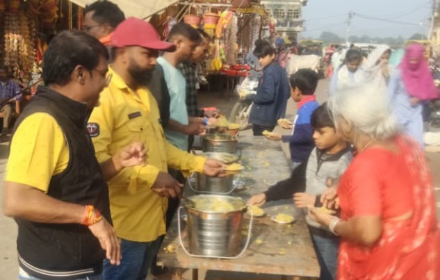 कार्यकर्ताओं ने भक्तजनों को स्नेहपूर्वक प्रसादी वितरित की और सेवा, भक्ति व सनातन संस्कारों की उज्ज्वल मिसाल पेश की। इस सेवा कार्य में उपस्थित जिला संयोजक नितिन मेषकर, जिला सह संयोजक प्रदीप दायमा, विश्व हिंदू परिषद के जिला गोरक्षा प्रमुख कैलाश दायमा, बजरंग दल जिला गौरक्षा प्रमुख दिनेश किर, जिला सुरक्षा प्रमुख पवन सिंह, नगर सह मंत्री सुरेंद्र साहू, नगर उपाध्यक्ष प्रखर राज शर्मा, ब्रज पालीवाल, अजय पाराशर, विक्की तोमर, राजेश पराशर, दिलीप तोमर, संजू तोमर, महेंद्र मेषकर, बबली तिवारी एवं अन्य कार्यकर्तागण उपस्थित हुए।