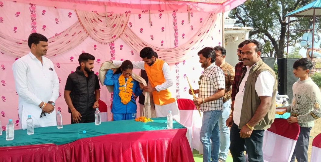 नर्मदापुरम / बैतूल जिले के ग्राम राक्शी तहसील भैंसदेही की रहने वाली कुमारी दुर्गा यादव ने अपने गांव तथा अपना शहर तथा पूरे यदुवंश के साथ देश का नाम रोशन किया। दुर्गा बेटी ने ब्लाइंड T20 क्रिकेट वर्ल्ड कप फाइनल खेलकर टीम को जीत दिलाकर अपने मां बाप भाई, बहन तथा अपने शिक्षक तथा समाज का नाम रोशन किया तथा टूर्नामेंट खेल कर वापस अपने गांव लौटी तो भोपाल से लेकर बैतूल तक जगह-जगह भव्य स्वागत किया गया। श्री राधे कृष्णा मंदिर डाडीवाडा में इं. पवन यादव राष्ट्रीय यदुवंशम् सेना के राष्ट्रीय अध्यक्ष द्वारा अपने साथियों के साथ कुमारी दुर्गा यादव का भव्य स्वागत किया गया। स्वागत के लिए मंच पर उपस्थित, संगठन के मध्य प्रदेश युवा अध्यक्ष नारायण यादव , बैतूल जिले के ग्रामीण अध्यक्ष संतोष यादव, कर्मवीर यादव मध्य प्रदेश सचिव, मां दुर्गा, पप्पू यादव जिला सचिव, बैतूल जिला सचिव सुरेश यादव, शिवनारायण यादव, स्वप्निल जैसवाल, समाजसेवी सिमरन ढाबा, गोपेन्द्र यादव, राजेश यादव, पवन यादव, अखिल राव आदि दर्जनों संगठन के सदस्य उपस्थित रहे।