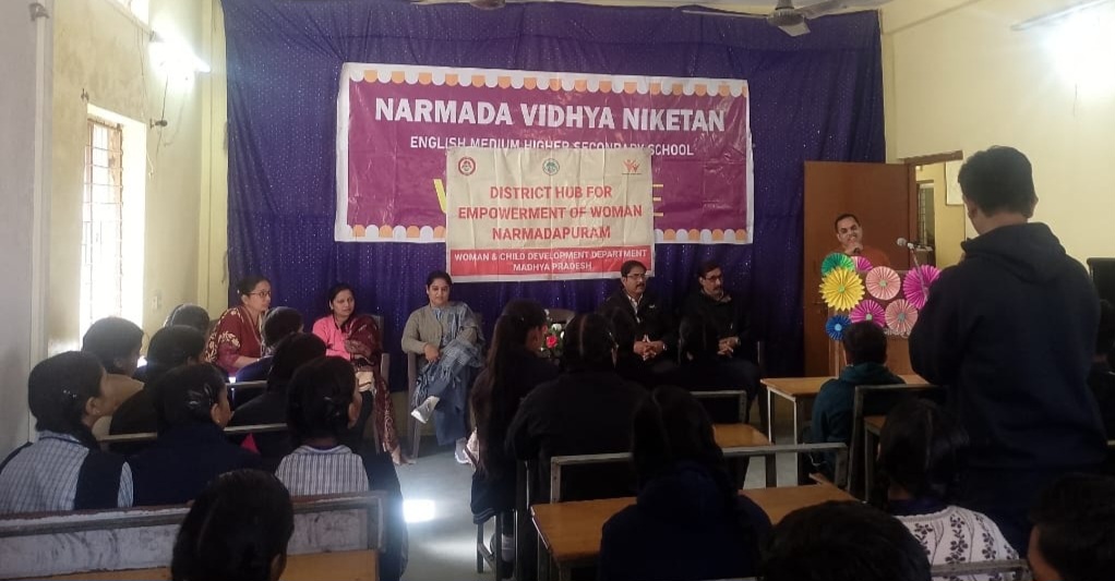 नर्मदापुरम / आज शनिवार को “हब फार एम्पावरमेंट आफ वुमन” अंतर्गत जिला कार्यक्रम अधिकारी ललित डेहरिया के मार्गदर्शन में वन स्टाप सेटर के द्वारा नर्मदा विद्या निकेतन हायर सेकेण्डरी स्कूल में “महिला हिंसा उन्मूलन 16 दिवसीय विशेष अभियान अंतर्गत ” जागरूकता कार्यक्रम आयोजित किया गया। प्रशासक प्रतिभा बाजपेयी के द्वारा छात्र/छात्राओं को महिला हेल्पलाइन 181, घरेलू हिंसा निषेध अधिनियम 2005, पोस्को अधिनियम 2012, चाईल्ड हेल्पलाइन 1098 की जानकारी प्रदान की गई। डां मयंक तोमर (सर्व शिक्षा अभियान ब्रांडएम्बेसडर) द्वारा साइबर क्राइम, जेंडर समानता की जानकारी दी गई। काउंसलर भागवती विष्ट ने गुड टच, बैड टच तथा वन स्टाप सेंटर के योजनाओं की जानकारी दी। स्कूल संचालक स्वपनिल उपाध्याय ने बालिकाओं को उनके अधिकार, सुरक्षा तथा कैरियर से संबंधित जानकारी दी। स्कूल प्राचार्य अनुज दीवान द्वारा आभार प्रदर्शन किया गया। कार्यक्रम का संचालन स्कूल की शिक्षिका कनिष्का गौर ने किया। इस कार्यक्रम में वन स्टाप सेंटर से केसवर्कर पूजा खरवार, आई. टी. वर्कर रजनी श्रोती, स्कूल शिक्षिकायें तथा छात्र/छात्रा उपस्थित रहे।
