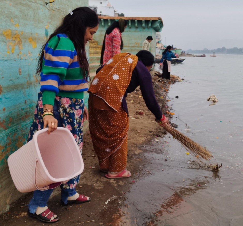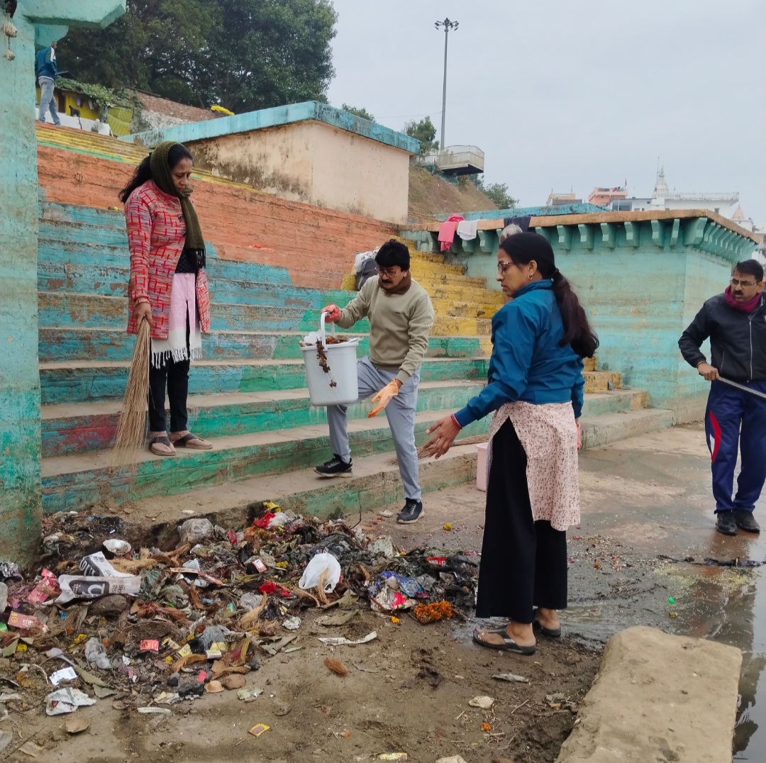 नर्मदापुरम / शहर में रविवार को चित्रगुप्त घाट पर अखिल भारतीय कायस्थ समाज मातृशक्ति द्वारा स्वच्छता अभियान चलाया गया। घाट पर फैले कचरे कूड़े आदि को एकत्रित कर डस्टबिन में डाला गया और नर्मदा किनारे से घाट के किनारे जमी काई को निकल गया । नर्मदा किनारे फूल माला अन्य सामग्री लोग डाल देते हैं पानी में से निकाल कर बाहर निकाल और सभी सामग्री को एकत्रित कर डस्टबिन में डाला गया। इस अवसर पर उपस्थित नगर पालिका उपाध्यक्ष अभय वर्मा ने कहा कि मां नर्मदा हमारे जीवन दायिनी है। हम सब का कर्तव्य है की मां को स्वच्छ और सुंदर बनाएं घाट पर गंदगी ना फैलाएं ।