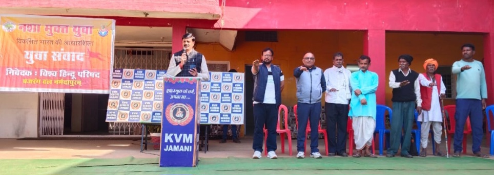इटारसी / विश्व हिंदू परिषद बजरंग दल मध्यभारत प्रांत के मार्गदर्शन में चलाए जा रहे नशा मुक्त युवा जागरूकता कार्यक्रम विकसित भारत की आधारशिला में शासकीय उच्चतर माध्यमिक विद्यालय पुरानी इटारसी, कस्तूरबा विद्या मंदिर स्कूल जमानी, जीनियस प्लानेट स्कूल सोनासांवरी एवं नर्मदा वैली इंटरनेशनल स्कूल नर्मदापुरम में युवाओं को नशे से दूर रहने की शपथ दिलाई गई। विहिप जिला मंत्री चेतन सिंह राजपूत ने कहा कि हमें भारत को मजबूत बनाने के लिए किसी भी प्रकार के नशे से दूर रहना है। यह नशा हमारे युवाओं को कमजोर कर रहा है जिससे हमारे भारत के भविष्य की नींव कमजोर हो रही है। इस दौरान राष्ट्रीय स्वयंसेवक संघ के सदस्य भूतपूर्व सैनिक नगर पालिका उपाध्यक्ष इटारसी निर्मल सिंह राजपूत ने विद्यार्थियों को नशा न करने की शपथ दिलाई और कहा कि हमें अपने आसपास के मित्रों और परिजनों को किसी भी प्रकार के नशे से दूर रहने की सलाह देना है। उक्त अवसर पर सभी विद्यार्थियों, शिक्षकों एवं उपस्थित अभिभावकों ने संयुक्त रूप से शपथ ली। विश्व हिंदू परिषद बजरंग दल द्वारा यह नशा मुक्त युवा कार्यक्रम पूरे भारत देश में चलाया जा रहा है और आगामी एक सप्ताह तक चलेगा। इस युवा संवाद कार्यक्रम के दौरान विश्व हिंदू परिषद के जिलाध्यक्ष डॉ. सुभाष दुबे, नितिन श्रीवास्तव, इमरान खान, धीरेंद्र बुंदेला, श्वेता शुक्ला, अश्वनी मालवीय, सपना गिरधारी, जाफर सिद्दीकी एवं मातृशक्ति गीता चौधरी आदि मौजूद रहे।