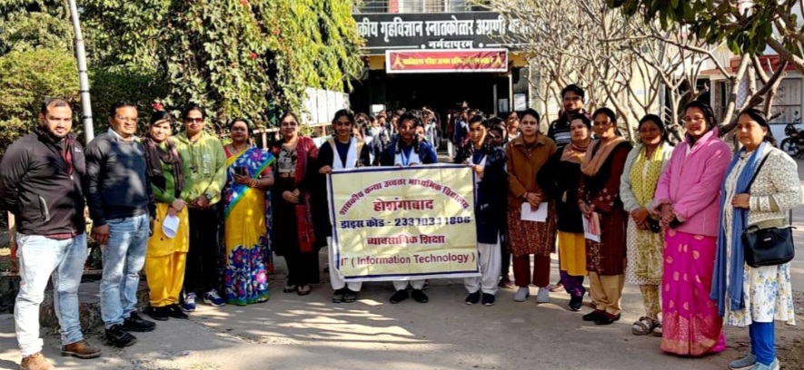 नर्मदापुरम / विगत दिवस शासकीय गृह विज्ञान अग्रणी महाविद्यालय में शासकीय उच्चतर कन्या विद्यालय नर्मदापुरम की लगभग 150 छात्रों द्वारा महाविद्यालय का भ्रमण किया गया। महाविद्यालय की प्राचार्य डॉ. श्रीमती कामिनी जैन ने बताया कि ई प्रवेश सत्र 2026 27 की प्रवेश प्रक्रिया पूर्ण दिनांक 5 दिसंबर 2025 से 5 जनवरी 2026 तक कॉलेज चलो अभियान के प्रथम चरण आओ जाने महाविद्यालय के अंतर्गत विद्यार्थियों को महाविद्यालय की शैक्षणिक, प्रयोगशाला, खेल, ग्रंथालय, बेस्ट प्रक्टिसेस – मशरूम, जैविक खेती एवं अन्य आधारभूत सुविधाओं का अवलोकन करने हेतु इस विजिट का आयोजन किया गया है। प्राचार्य डॉ जैन ने बताया कि छात्राओं ने प्राचार्य एवं शिक्षकों के साथ बातचीत कर अपनी जिज्ञासाओं विषयों पर रुचि एवं कॉलेज के बारे में प्रश्न किया तथा प्राचार्य ने बताया कि भविष्य में जिला शिक्षा अधिकारी एवं विभिन्न स्कूलों के प्रचार्यों के साथ बैठक समपन्न कराई जायेगी। इस प्रकार के भ्रमण से विद्यार्थियों को स्थानीय महाविद्यालय में संचालित विभिन्न सुविधाओं की जानकारी प्राप्त हो रही है।
