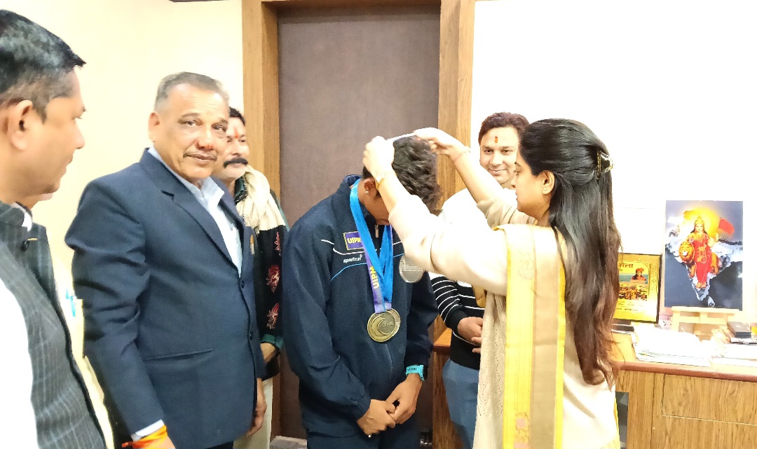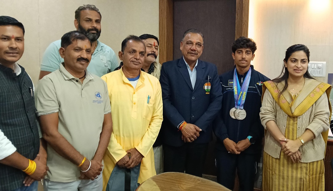 नर्मदापुरम / दक्षिण अफ्रीका में मॉर्डन पेंटाथलॉन वर्ल्ड चैंपियनशिप में सिल्वर और ब्राउंज मैडल जीतने वाले नर्मदापुरम के गौरव यश बाथरे ने गुरुवार को जिला कलेक्टर सोनिया मीना से कलेक्ट्रेट कार्यालय में मुलाक़ात की। इस दौरान यश बाथरे ने दक्षिण अफ्रीका में आयोजित वर्ल्ड चैंपियनशिप के अपने सफर से कलेक्टर सुश्री मीना को अवगत कराया। इस दौरान कलेक्टर सोनिया मीना ने यश का सम्मान करते हुए कहा कि आप अपना कड़ा अभ्यास जारी रखें आने वाले चैंपियनशिप में कड़े और कठिन मुकाबलों आपको मिलेंगे। आप अपना आत्मविश्वास और आत्मबल बनाएं रखे। यश ने कलेक्टर को बातया कि आगे एशियन गेम्स में मैं भारत का प्रतिनिधित्व करूं इसके लिए पुणे की अकादमी में प्रशिक्षण करने जा रहा हूं। इस अवसर पर यश के कोच उमाशंकर व्यास, यश के पिता कमलेश बाथरे, पार्षद राजेंद्र उपाध्याय, रजक समाज जिलाध्यक्ष महेश बाथरे, रजक समाज नगर अध्यक्ष मनीष परदेशी, अंकित उपाध्यक्ष उपस्थित थे।
