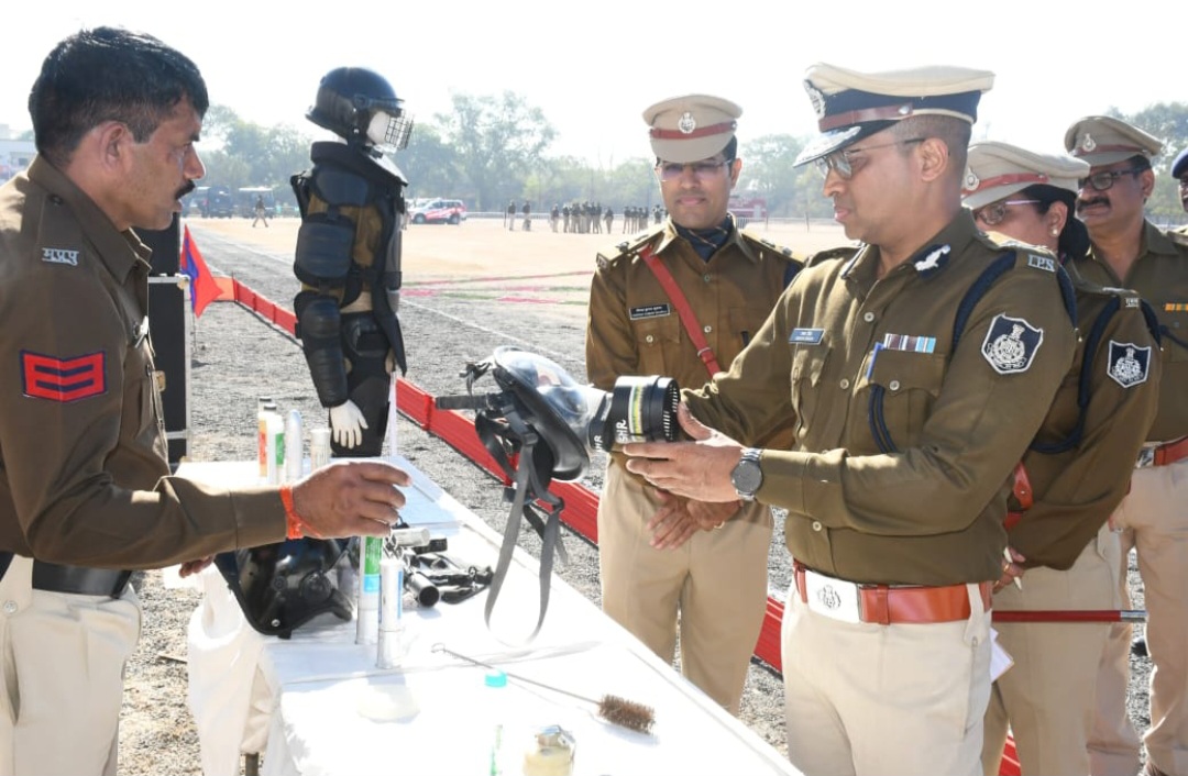 बलवा सामग्री का अवलोकन किया, जिसमें जिला सीहोर के पास बलवा ड्रील सामानों का निरीक्षण किया गया । विभिन्न प्रकार के ग्रनेड सेल्स आदि की उपलब्धता की समीक्षा की गई । बलवा ड्रिल का अभ्यास कराया गया, जिसमें सभी राजपत्रित अधिकारी एवं थाना प्रभारी उपस्थित रहे भीड़ नियंत्रण, आंसू गैस, वाटर कैनन, बैरिकेडिंग, सुरक्षा घेरा निर्माण एवं प्राथमिक चिकित्सा जैसे महत्वपूर्ण पहलुओं का प्रभावी प्रदर्शन किया गया । इस अवसर पुलिस महानिरीक्षक महोदय द्वारा किस प्रकार से कार्यवाही की जानी हैं, बलवे में क्या-क्या कार्यवाही की जाती हैं, विस्तार से बताया गया एवं की गई बलवा ड्रील की प्रशंसा की गई ।