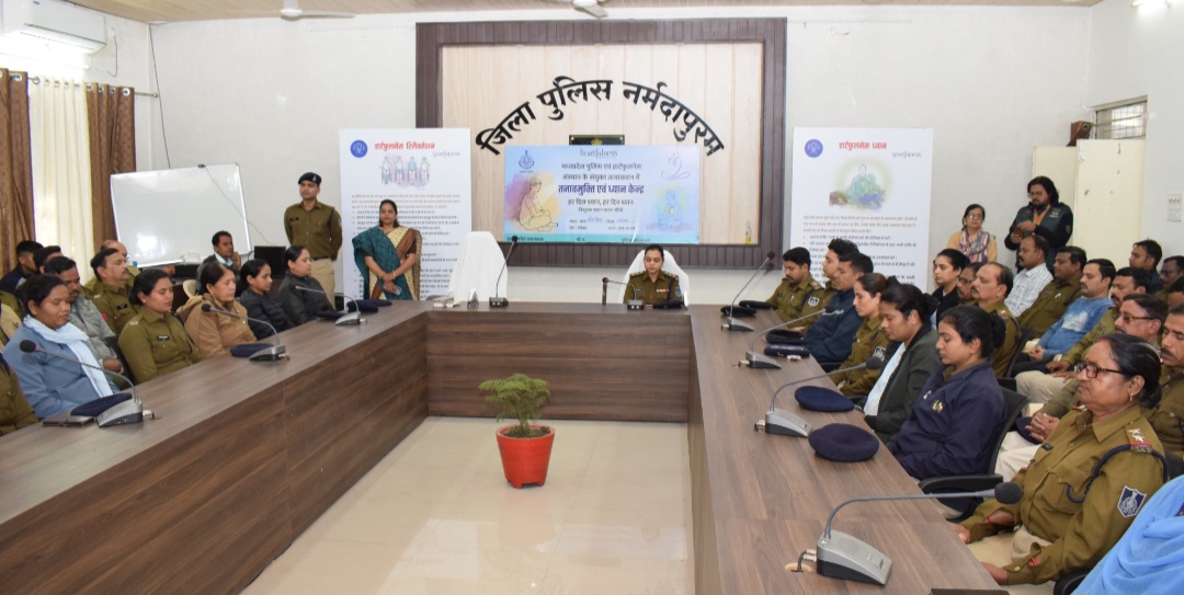 नर्मदापुरम / पुलिस मुख्यालय भोपाल के निर्देशानुसार दिनांक 21 दिसंबर 2025 दिन रविवार को विश्व ध्यान दिवस के अवसर पर रक्षित केंद्र सहित जिले के समस्त थानों में मध्यप्रदेश पुलिस एवं हार्टफुलनेस संस्थान के संयुक्त तत्वाधान में कंट्रोल रूम नर्मदापुरम में “तनाव मुक्ति एवं ध्यान केंद्र” कार्यक्रम का आयोजन किया गया । इस कार्यक्रम का मुख्य उद्देश्य पुलिस बल के मानसिक स्वास्थ्य, तनाव प्रबंधन, कार्य क्षमता में वृद्धि, सकारात्मक सोच के विकास तथा कर्तव्य निर्वहन में एकाग्रता को सुदृढ़ करना है। इसी क्रम में यह कार्यक्रम ऑनलाइन माध्यम से जिले के समस्त थानों में एक साथ आयोजित हुआ।
