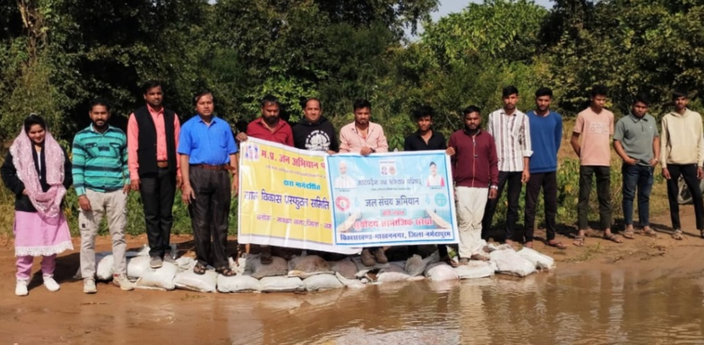 नर्मदापुरम /मध्य प्रदेश जन अभियान परिषद के मार्गदर्शन में माखन नगर के सेक्टर 1 में सूर्योदय सामाजिक संस्था द्वारा ग्राम रजोन एवं जावली के मध्य चुलई नाला पर बोरी बंधान किया गया एवं सेक्टर बैठक कर जल संरक्षण का संदेश ग्राम वासियों को दिया गया। इस अवसर पर ब्लॉक समन्वयक नरेंद्र देशमुख ने बताया कि जल संरक्षण करने से न केवल भूमिगत जल में वृद्धि होती है बल्कि फसलों एवं सब्जियों के लिए भी पानी की उपलब्धता बढ़ती है। सूर्योदय सामाजिक संस्था से हरीश नामदेव ने बताया कि हमारे खेत का पानी खेत में और गांव का पानी गांव में रहे इस हेतु हमें विभिन्न जल संरचनाए जैसे बोरी बंधान आदि बनाकर जल संरक्षण करना चाहिए। सभी सदस्यों को जल संरक्षण की शपथ भी दिलाई गई। कार्यक्रम में मध्य प्रदेश जन अभियान परिषद के ब्लॉक समन्वयक नरेंद्र देशमुख सूर्योदय सामाजिक संस्था से हरीश नामदेव नवांकुर संस्था प्रमुख नीतिराजसिंह यादव, परामर्शदाता सुरेश यादव, पूनम मीणा एवं ग्राम विकास प्रस्फुटन समिति से रोहित यादव, विपिन अहिरवार, शिवम यादव, अनिकेत यादव एवं ग्रामीण जन उपस्थित रहे।