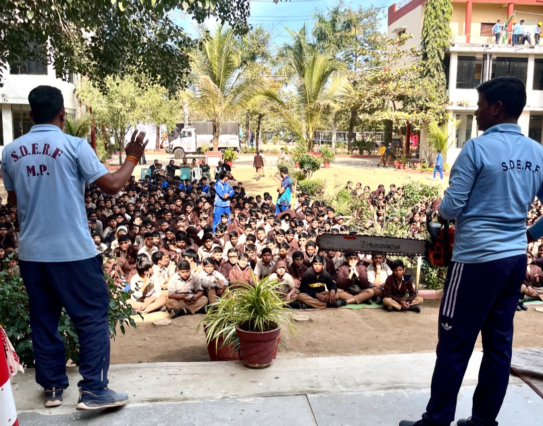 बुधवार को होमगार्ड के प्लाटून कमांडर शिवराज चौधरी और एनडीआरएफ की टीम के सदस्यों ने बच्चों को प्राकृतिक आपदा से निपटने की गुर बताए। इस दौरान उन्होंने बच्चों को बताया कि बाढ, भूकंप, आगजनी या अन्य प्रकार की आपदा के दौरान हमें क्या करना चाहिए। हम अपनी और अन्य लोग की जान कैसे बचा सकते हैं। तुम के सदस्यों ने इस दौरान राहत और बचाव कार्य का डेमो भी दिया।