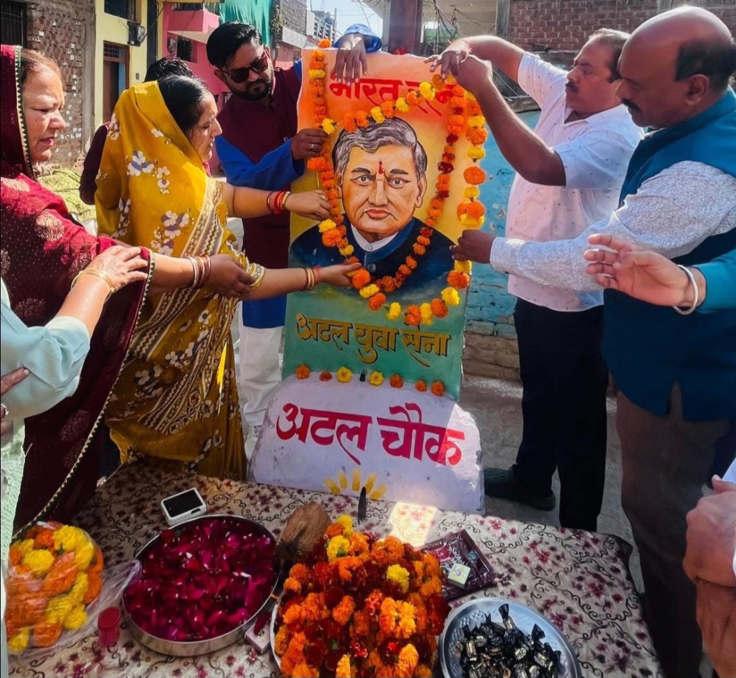नर्मदापुरम / भाजपा के केंद्र एवं प्रदेश संगठन के निर्देश पर नगर में आज विभिन्न स्थानों पर भारत रत्न पूर्व प्रधानमंत्री अटल बिहारी वाजपेई की 100वीं जयंती मनाई गई। वार्ड क्रमांक 29 ग्वालटोली में स्थित अटल चौक पर नपाध्यक्ष नीतू यादव, पार्षद एवं वार्डवासियों द्वारा पूर्व प्रधानमंत्री भारत रत्न स्व. वाजपेई के चित्र पर माल्यार्पण किया गया। पूर्व प्रधानमंत्री स्व. वाजपेईजी की जयंती पर वार्ड क्रमांक 29 में नवीन सड़क का कार्य प्रारंभ कराया। कार्यक्रम को संबोधित करते हुए नपाध्यक्ष श्रीमती यादव द्वारा पूर्व प्रधानमंत्री स्व. वाजपेई द्वारा देशहित में किए गए कार्यों पर प्रकाश डाला। श्रीमती यादव ने कहा कि पूर्व प्रधानमंत्री वाजपेयी राजनीति के क्षेत्र में 4 दशकों तक सक्रिय रहे। वे लोकसभा में 9 बार और राज्यसभा में 2 बार चुने गए और एक कीर्तिमान स्थापित किया। 1980 में गठित भाजपा के संस्थापक अध्यक्ष भी रहे। उन्होंने 13 अक्टूबर 1999 को लगातार दूसरी बार राष्ट्रीय जनतांत्रिक गठबंधन की नई गठबंधन सरकार के प्रमुख के रूप में भारत के प्रधानमंत्री का पद ग्रहण किया था। नपाध्यक्ष श्रीमती यादव ने पूर्व प्रधानमंत्री अटल बिहारी वाजपेयी के प्रमुख कार्यों पर प्रकाश डालते हुए कहा कि पूर्व प्रधानमंत्री स्व. वाजपेई द्वारा भारत को परमाणु शक्ति संपन्न बनाया गया। पोखरण में परमाणु परीक्षण कर पूरे विश्व को बता दिया था कि भारत किसी भी क्षेत्र में पीछे नहीं है। उनके द्वारा स्वर्णिम चतुर्भुज और प्रधानमंत्री ग्रामीण सड़क योजना जैसी बुनियादी ढांचा परियोजनाएं, सर्व शिक्षा अभियान की शुरूआत, किसान क्रेडिट कार्ड योजना और दूरसंचार क्रांति को बढ़ावा दिया गया। साथ ही उन्होंने हिंदी को संयुक्त राष्ट्र में प्रतिष्ठित स्थान दिलाया। भारत उनका हमेशा ऋणी रहेगा। जयंती समारोह में विधायक प्रतिनिधि महेंद्र यादव, मंडल अध्यक्ष रूपेश राजपूत, गोविंद राय, पार्षद सुषमा खत्री, विमला चुटीले, नरेंद्र पटेल, बूथ प्रभारी राजू मालवीय, पूर्व पार्षद अजय रतनानी, अमित खत्री, सुचित्रा यादव सहित बड़ी संख्या में वार्डवासी उपस्थित रहे।