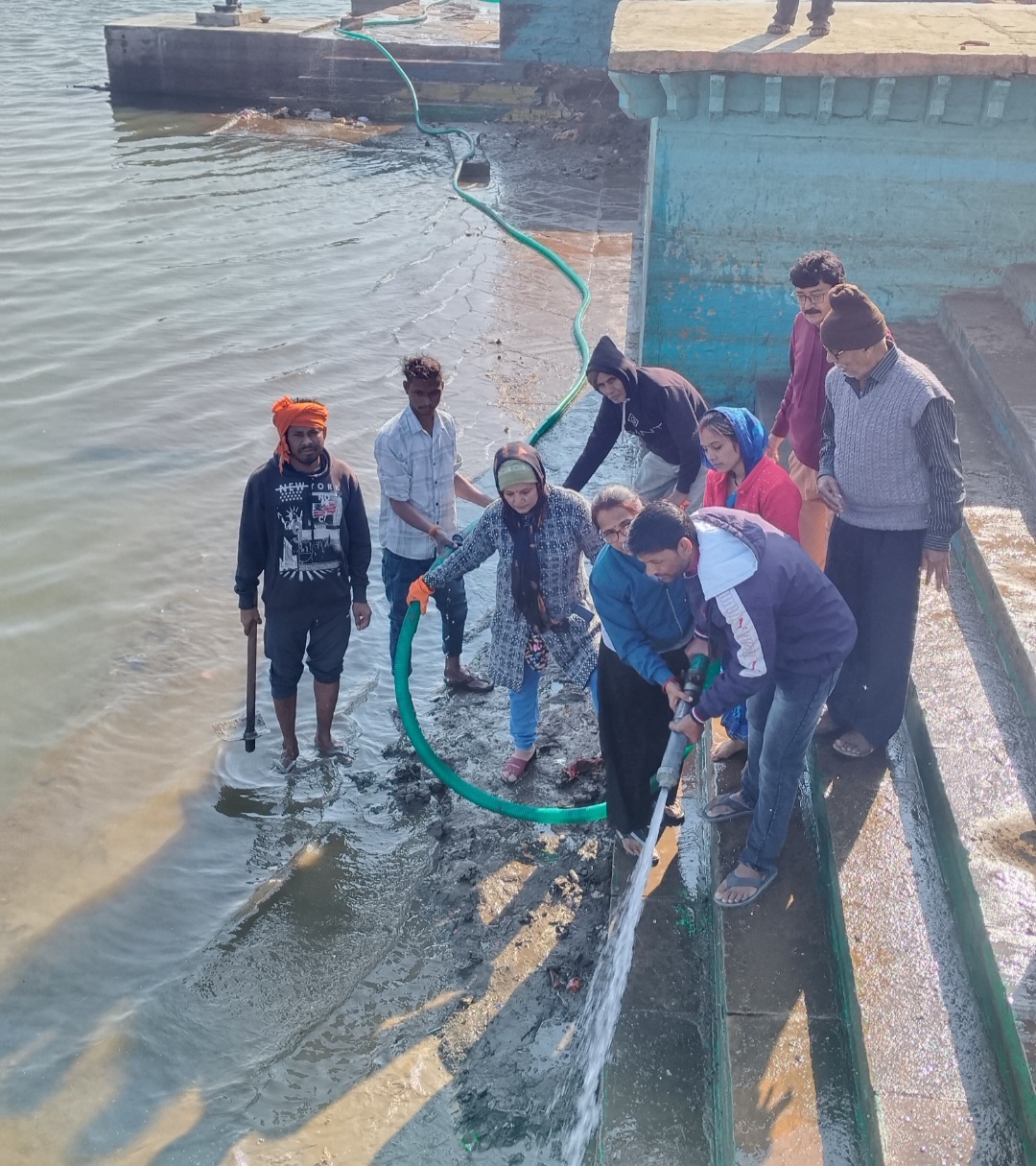 नर्मदापुरम / अखिल भारतीय कायस्थ समाज मातृशक्ति द्वारा हर रविवार को घाटों के किनारे स्वच्छता अभियान चलाया जाता है और शहरवासियों को संदेश दिया जाता है। इस रविवार चित्रगुप्त घाट पर समाज के लोगों ने भारी मात्रा में इकट्ठा होकर सीढ़ियों पर जमा कपा बड़े पाइप की सहायता से धोया । किनारे से कचरा हटाकर डस्टबिन में डाला और परिसर की धुलाई की गई, जिससे परिसर चमक उठा। इस मौके पर अध्यक्ष राजेंद्र श्रीवास्तव, सुमन वर्मा, नगर पालिका उपाध्यक्ष अभय वर्मा, ज्योति वर्मा, प्रीति खरे, लालता, सीबी खरे, मंजू श्रीवास्तव, जानकी, मनोज वर्मा, अशोक वर्मा, विजय वर्मा, रश्मि, सक्षम वर्मा, रश्मि सक्सैना, पुरुषोत्तम मालवीय, कैलाश, अदिति, गुड्डू वर्मा सहित अनेक लोग उपस्थित थे। स्वच्छता अभियान में रविवार को महिलाओं ने पाइप की सहायता से पूरे परिसर को चकाचक कराया और लोगों से कहा कि वे किनारों पर कचरा ना डालें और मां नर्मदा को स्वस्थ स्वच्छ रखें।