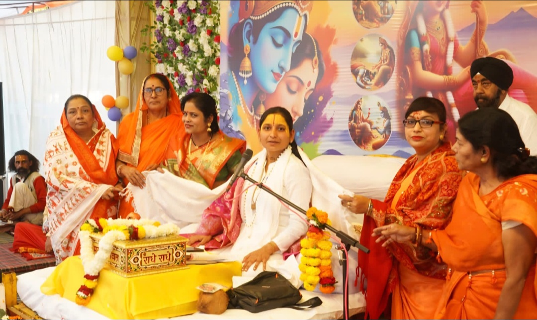 इटारसी / विश्व हिंदू परिषद मातृशक्ति के द्वारा वृंदावन गार्डन में 7 स्टार क्लब द्वारा आयोजित सप्तदिवसीय संगीतमय श्रीमद भागवत कथा में पहुंचकर व्यास पीठ पर विराजमान ब्रजभूमि गोवर्धन से पधारी कथावाचक बाल साध्वी राधा देवी का स्वागत सम्मान किया एवं उनके मुखारविंद से श्री कृष्ण जन्म महिमा का अत्यंत रोचक प्रसंग श्रवण किया और आरती में सम्मिलित होकर धर्म लाभ अर्जित किया। स्वागत करने वालों में मुख्य रूप से नगर संयोजिका अनीता तिवारी,nसह संयोजिका आरती मालवीय, मीरा तिवारी, सुमन चौहान तथा बड़ी संख्या में मातृशक्तियां उपस्थित रहीं। इस दौरान आयोजक जसवीर छाबड़ा भी मौजूद रहे। विश्व हिंदू परिषद के जिला प्रचार प्रसार प्रमुख अनुरुद्ध चंसौरिया ने कहा कि ऐसे आयोजनों से क्षेत्र में धार्मिक वातावरण बनता है और शांति स्थापित होती है।