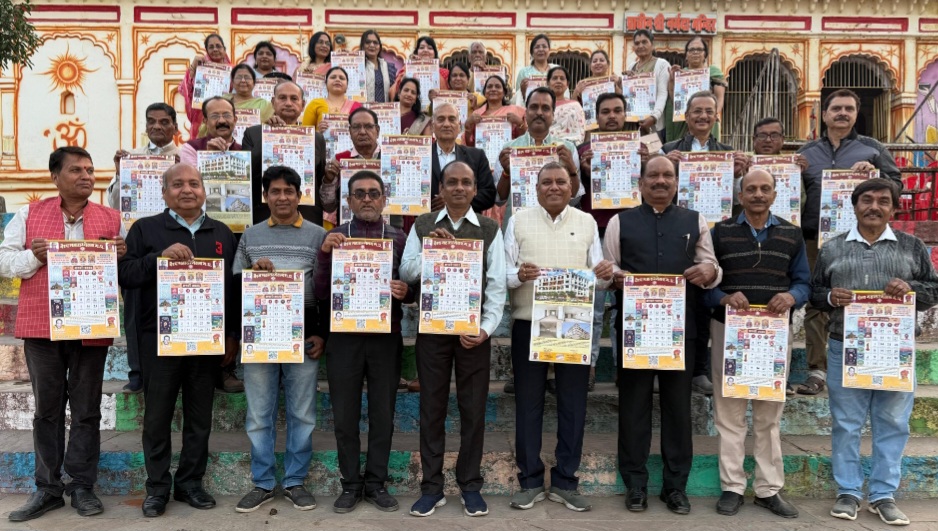 नर्मदापुरम / नये वर्ष के आगाज होते ही प्रतिवर्ष अनुसार इस वर्ष भी वैश्य महासम्मैलन मध्यप्रदेश के सन 2026 के नये केलेन्डर का विमोचन नर्मदापुरम नगर में संपन्न हुआ। वैश्य महासम्मेलन मध्यप्रदेश के केलेन्डर में यह खूबी होती है कि प्रदेश भर के सभी पदाधिकारियों के मोबाइल नम्बर एंव पोस्ट के साथ साथ सनातन धर्म के सभी तीज त्यौहारों का वर्णन होता है, जो सनातन संस्कृति के लिए बहुत महत्वपूर्ण है। विमोचन में कार्यकम के मुख्य अतिथि रहे डॉं. पंडित गोपाल प्रसाद खड्डर, सम्भागीय अध्यक्ष अजित सेठी, सम्भागीय अध्यक्ष महिला नीरजा फौजदार, जिला अध्यक्ष संजय शिल्पी, जिला अध्यक्ष महिला श्रद्धा अग्रवाल, युवा इकाई जिला अध्यक्ष गौरव सेठ, नगर अध्यक्ष विपिन जैन, नगर अध्यक्ष महिला शारदा जैन, इटारसी नगर अध्यक्ष अंजू गुप्ता, मुकेश मालवीय, जिला कोचिंग क्लास प्रभारी सुषमा गुप्ता, डॉं. राजेश माहेश्वरी, वरिष्ठ सदस्य सुरेश अग्रवाल, चंद्रप्रकाश गुप्ता, डॉं. आर के जैन, अरुण जैन, मनोज जैन, संजय अग्रवाल, मनोज गुप्ता, आशा खण्डेलवाल, सुनीता अग्रवाल, भावना चावरा, गायत्री अग्रवाल, अनीता आर एल जैन, अनीता अरुण जैन, रेखा गुप्ता, नर्मदाप्रसाद साहू, संजय साहू, नूतन अग्रवाल, रामेश्वर, आर एल जैन, मनीष गुप्ता, अरुण जैन, मनोज जैन, नीता माहेश्वरी, सरोज गुप्ता, सुनीता, सरोज, गुप्ता अग्रवाल आदि उपस्थित थे।